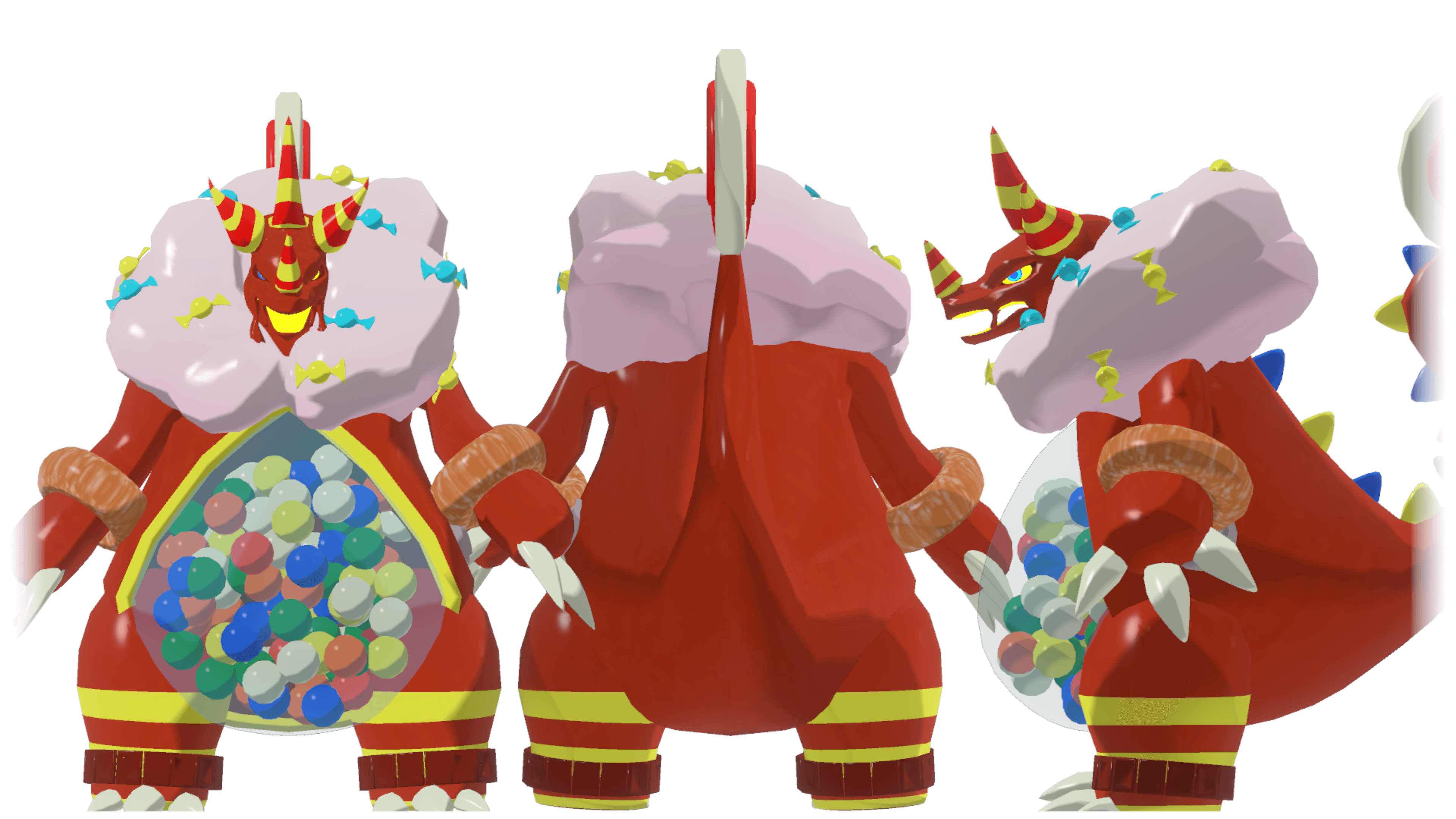 もっと多くの菓子を作る再生能力を、そして侵略の前線に配置された場合でも自衛ができる戦闘力を……と性能が盛られていった結果、気付けば大層強靭な怪獣になってしまった。