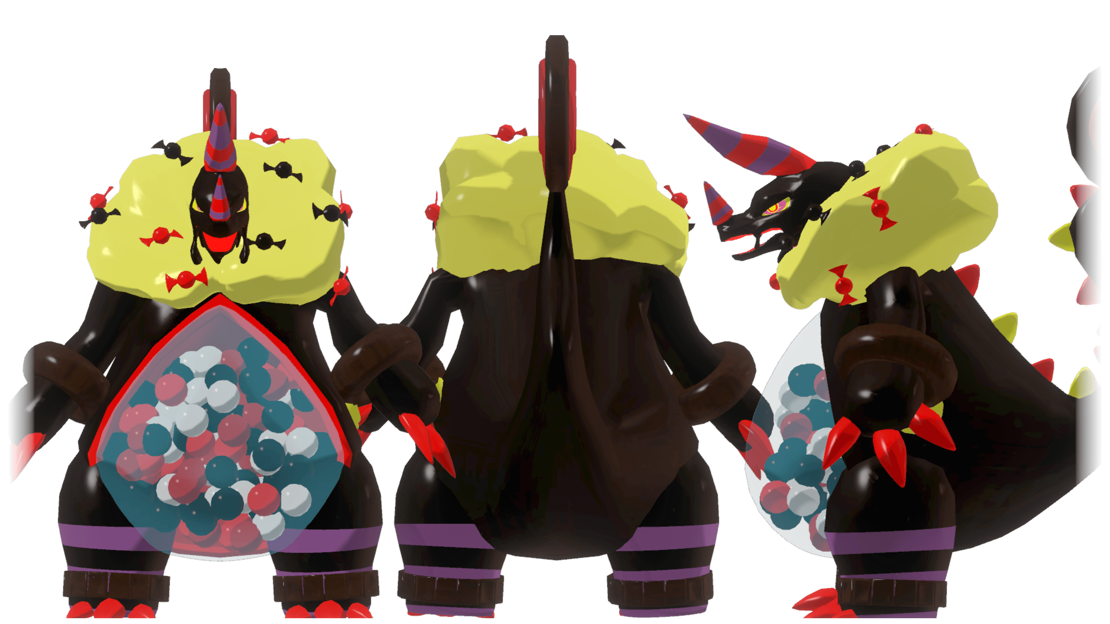 種族:複合怪獣 / 体長:摂取した糖分量によりサイズが変化する(10㎝~30m程度)普段は3m程度 / 性別:オス