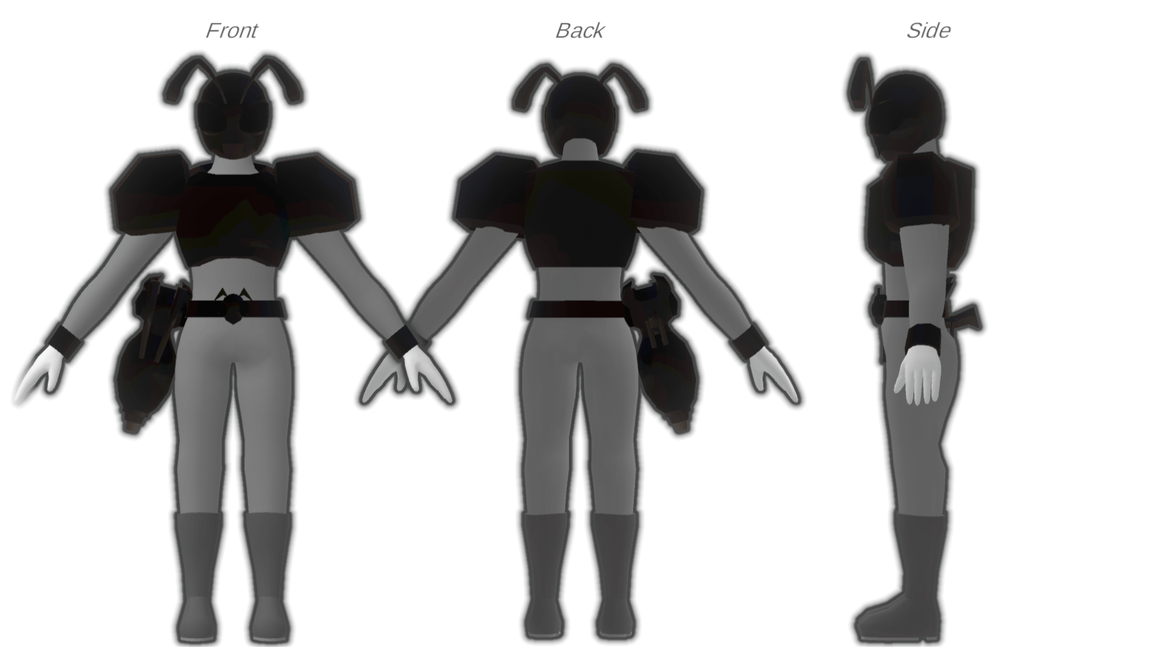 複製虫人 キラーアント 「我らの為の悪を成す!」 キラービーのデータをもとに人間を燃料としてブラックボックスが複製したアリ型の怪人。 キラービーの配下怪人チーム、「キラーバグズ」の一員として働いている。 一体一体の力はか弱いが仲間との連携と蟻酸に似たエキスの出る小銃を使い相手を追い詰める。 キラービーと同じく甘党。 極稀に突然変異種が生まれる。マニアの間では高値で売れるとか売れないとか。 種族:複製怪人 / 体長:約175cm / 性別:男 役職:下級戦闘員 / 属性:虫 / ナカノヒト:BunyanP Visual Data PREV NEXT